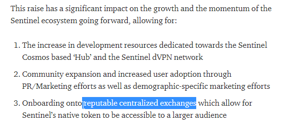 It's important to note that this great funding will not affect $Sent price in nearest future as there is long vesting period (They will not release any tokens for the first year and only 12% next). This is a proof that investors really believe in @Sentinel_co long-term growth
