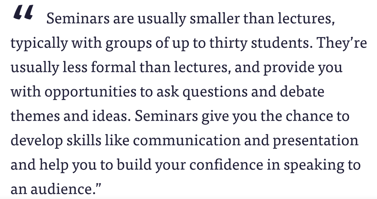 Nevertheless there's been a disproportionate focus on components of courses that offer hands on, practical experience not being (able) to be delivered like placements. But what about examples at the other end of the spectrum - the good old fashioned seminar?