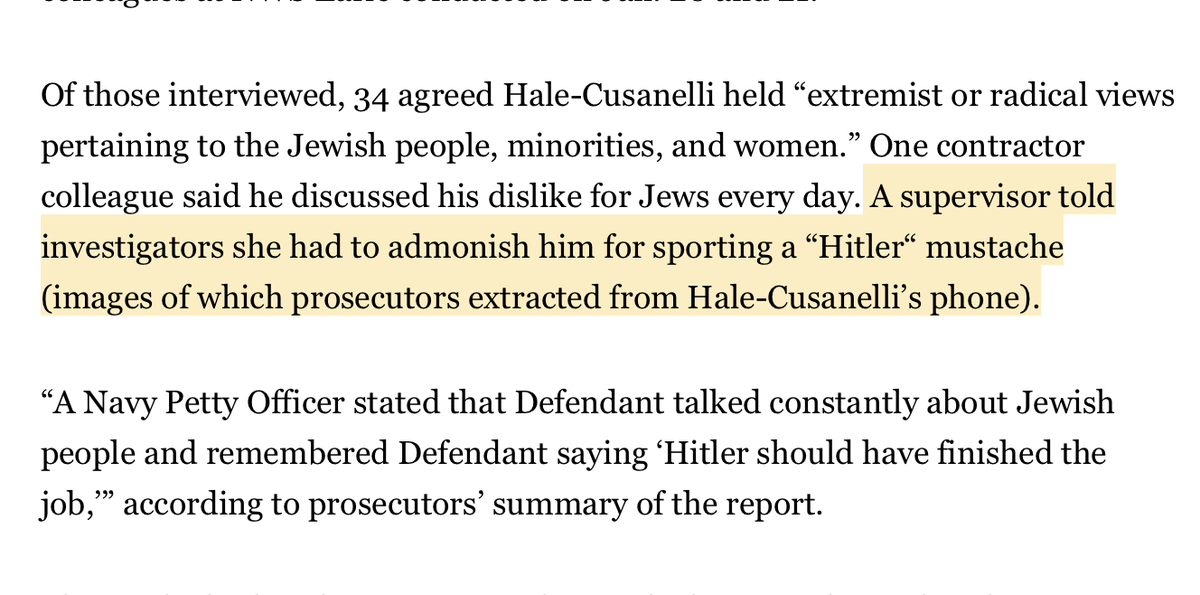 He is a @USNavy contractor obsessed with antisemitism. He wore a hitler mustache on his base at @NWSEarleNJ & quizzed colleagues about whether they were jewish.