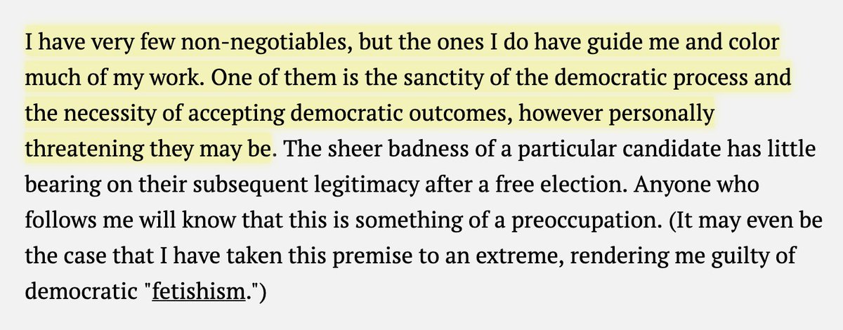 The Republican Party violated one of my only non-negotiables: the sanctity of democratic outcomes. And I won't forget that. But I also won't waver on this fundamental commitment. I believe, if anything, that it's more important than ever