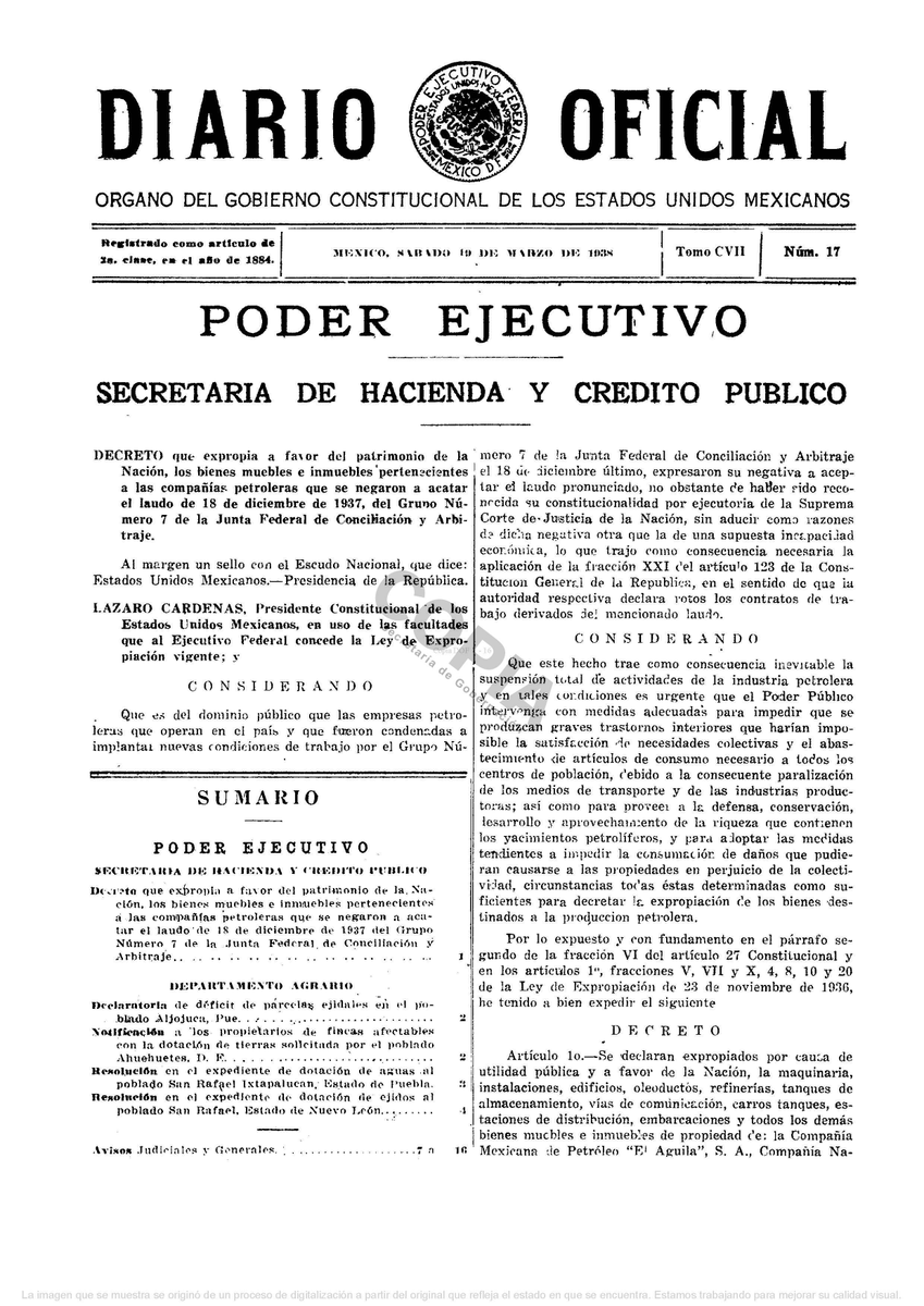 1e- Por cierto, quienes presumen como gran descubrimiento que dizque sólo se expropió a compañías británicas -no a las de los EEUU- o apenas se dan cuenta de que no se expropió el petróleo, sino los bienes de las compañías petroleras, no han leído esto: dof.gob.mx/nota_to_imagen…
