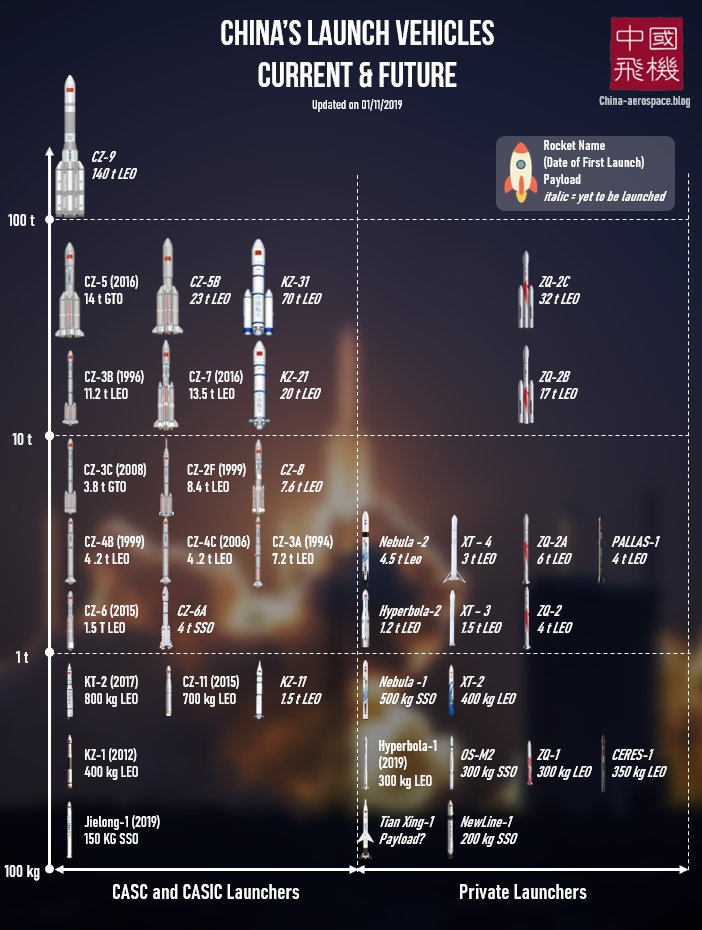 Ini jenis2 roket yg diluncurkan China menurut data 2019. Termasuk tipe2 roket dari perusahaan negara, dan perusahaan swasta.