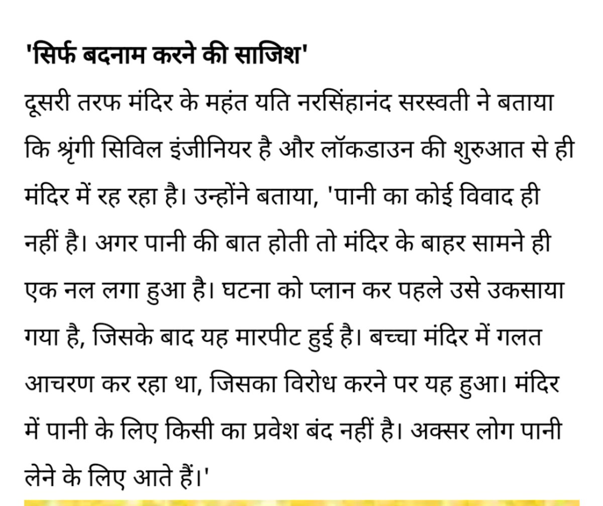 Other side, Mahant of the temple said that there was no dispute over water. It was because of boy's bad conduct inside temple.