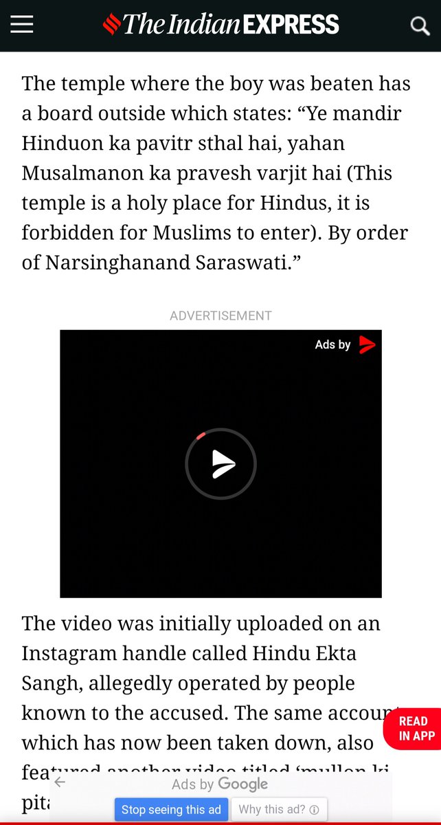 3. Another man said that the temple where the boy named Asif was beaten has a board outside which states: “This temple is a holy place for Hindus, it is forbidden for Muslims"