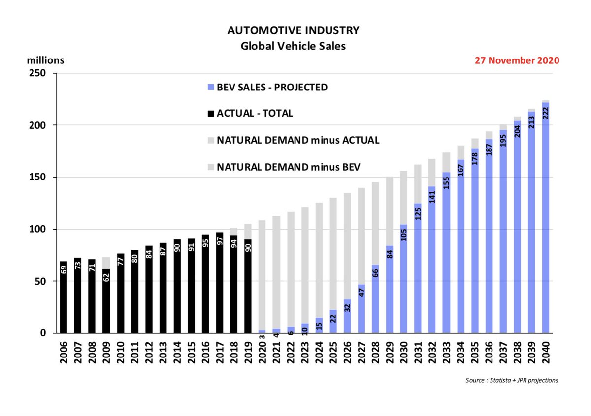 We do not yet have a final total for Global Vehicle Sales in 2020, but preliminary indictions are that 77.1 million vehicles were sold of which 2.1 million or 2.7% were pure BEVs