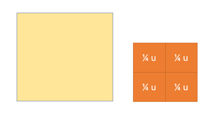 Mide el área de esta hoja con estos rectangulitos azules. Ahora mídela con estos rojos (tienen un área cuatro veces mayor, pero no lo decimos). ¿Qué observas?