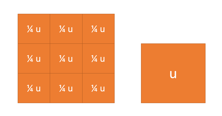 Y como necesito 9 de esas unidades, el mantel mide 9/4 u.
