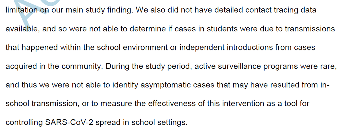 There are some really big issues: 1) Authors implicitly define "safe enough" to mean: if incidence isn't statistically significantly higher in school districts w/ 3'+ rule than 6'+ then no need for 6'+. But a lack of a significant difference can arise from many things. @bolkerb
