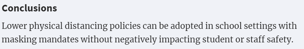 -If we want to get schools open at full capacity, ignore issues & use 3' & say it's supported by "peer reviewed science" (this paper is published). I'm certain many people/districts/states will do this.