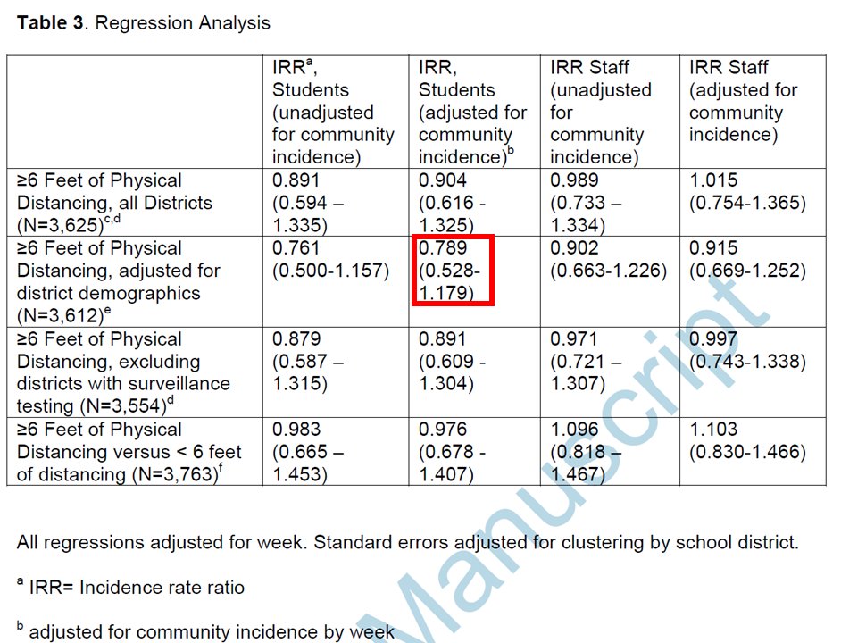 In other words, 6' might make schools MUCH safer than 3'-incidence might be twice as high!- or it might make no difference at all (or paradoxically, slightly riskier). Data are too noisy for us to be confident in comparison. Analyses also have many issues (too technical for twit)