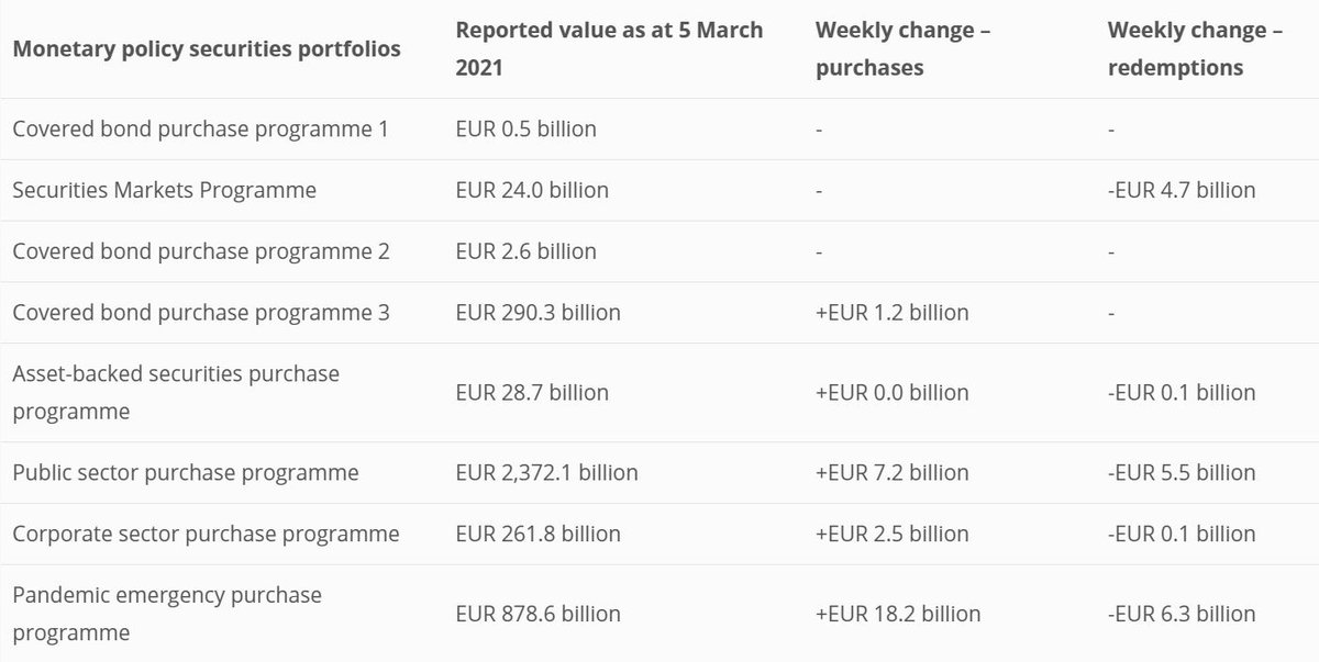 On Tuesdays at 15:00 CET, we publish the Eurosystem’s consolidated financial statement. In the commentary we report *gross* purchases & redemptions of the previous trading week for each programme. The difference corresponds to the net purchases above: 6/11 ecb.europa.eu/press/pr/wfs/h…