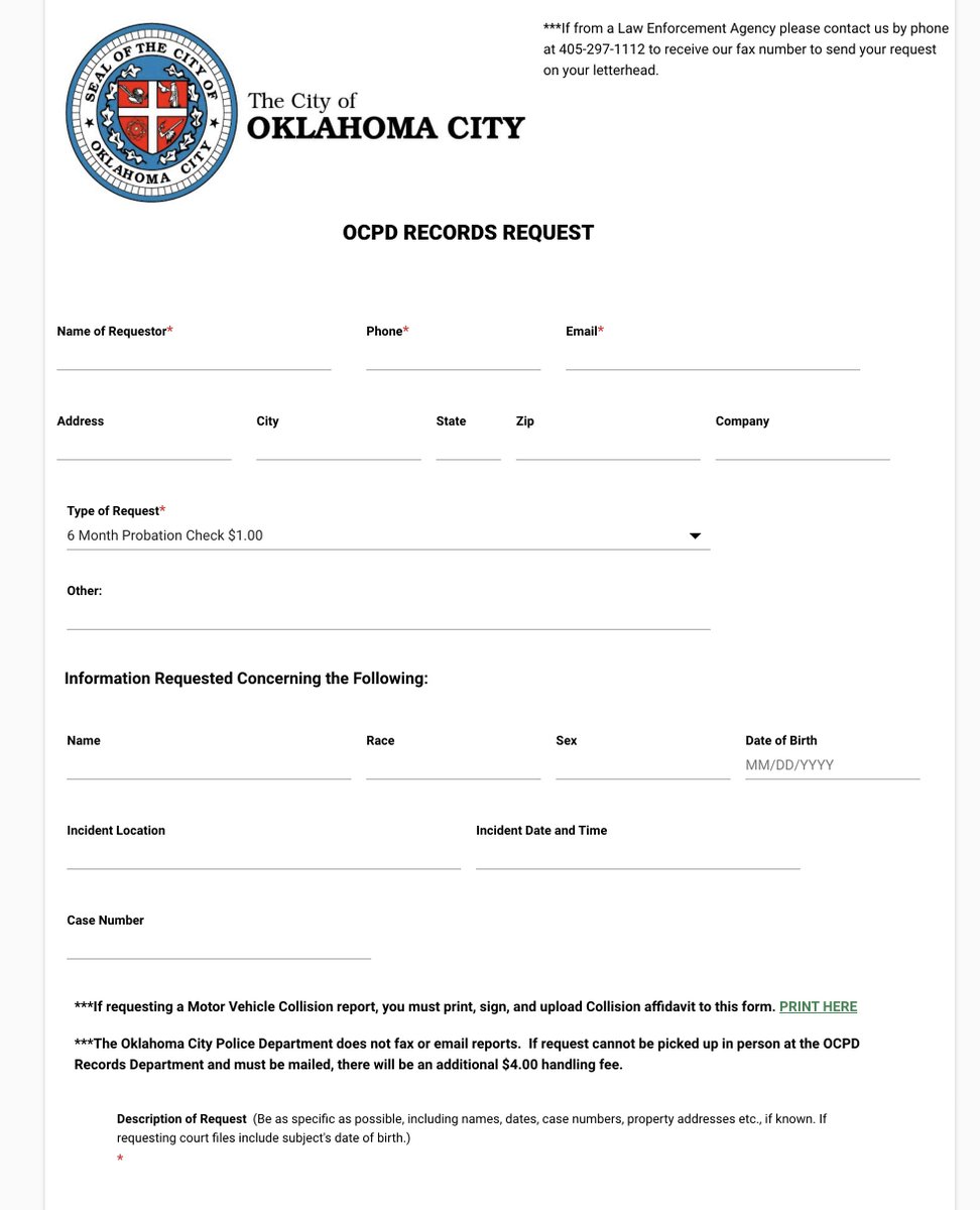 @QuintonChand@OKCPD Most incident reports are public record but late enforcement agencies often deny records that are related to ongoing investigations. Here is @OKCPD's request form that you can use to request reports: bit.ly/3ttJXgd 7/
