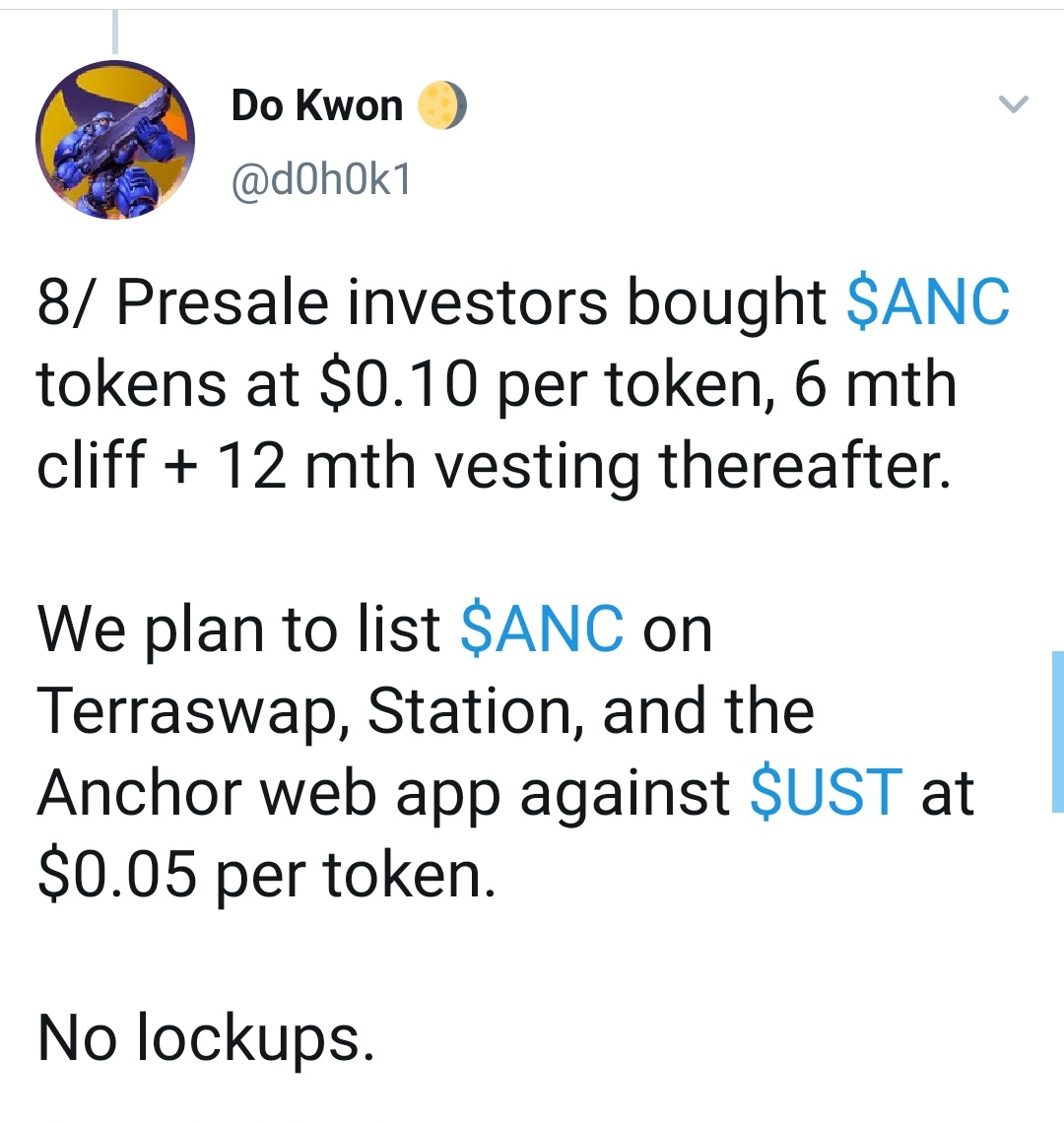 7) and finally this is why @d0h0k1 is kind of hero for me. He takes more care of small investors like us rather then big whales. The $ANC presale price for VC was x2 higher than listing one. Moreover VC have long vesting period so they will not dump on us within first 12 months.
