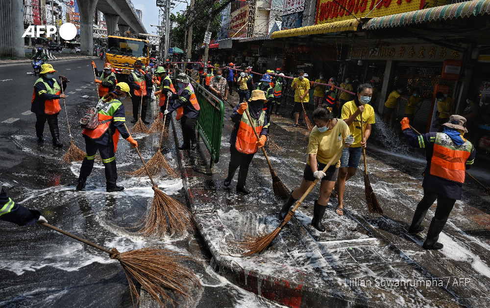📸Workers clean a Bangkok market after over 100 residents in the area tested positive for Covid