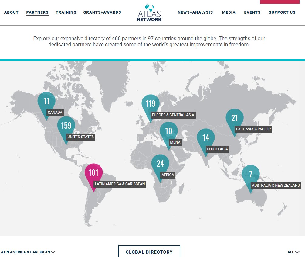 Si vemos el nombre o la descripción de las más de 500 fundaciones de la red Atlas Network, siempre aparece la palabra libertad para definir las ideas neoliberales dentro de su batalla cultural. atlasnetwork.org/partners/globa…