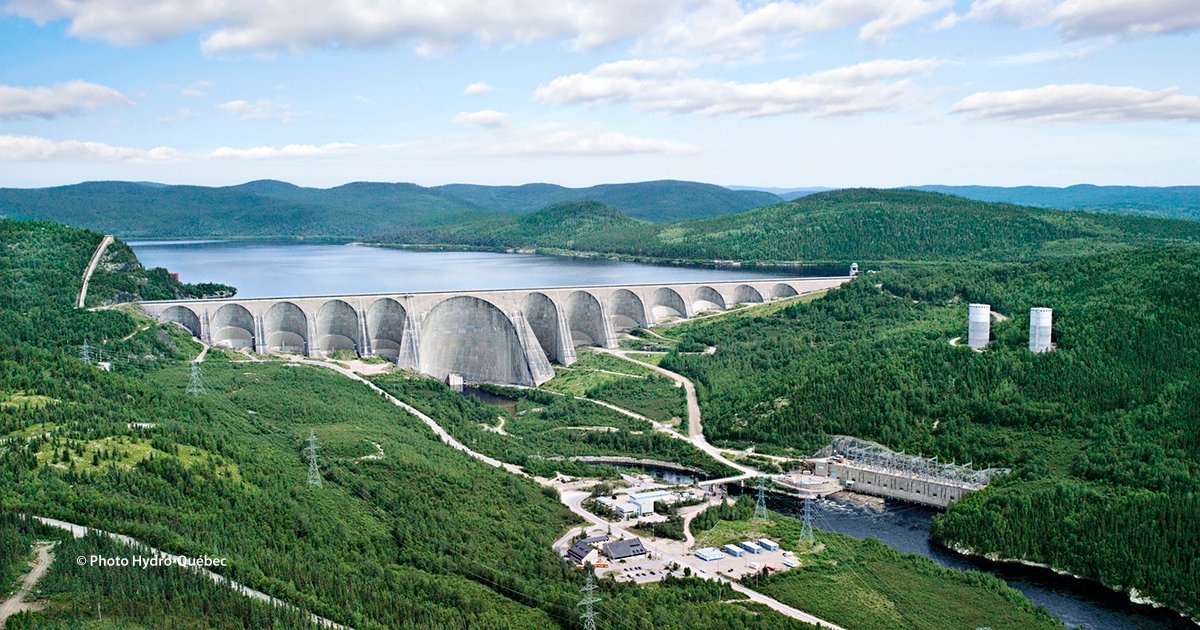 6/Le barrage Daniel-Johnson en impose : plus grand barrage à contreforts et à voûtes du monde, 50 étages de haut, 1,3 km de long, et 7 centrales en aval pour une puissance tot de 7 500 MW.