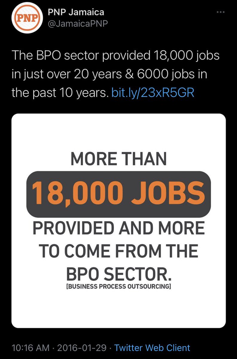 You raise unemployment and curse that BPOs are not jobs. But back in 2016 your party was very BPO-driven. As I said, the flip-flop when it suits you to fool the people is pandering. One thing bout Manley... Him always tell you wah him think and stick to it. Ask Garvey!