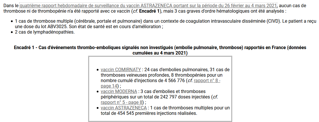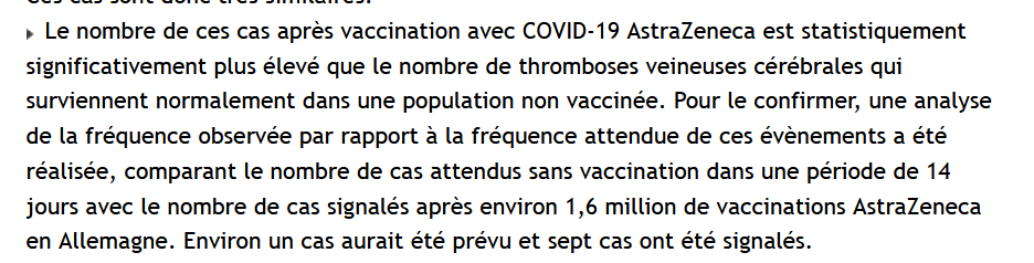 3/n Il a fallu que des médecins plus observateurs que d'autres ou se censurant moins se posent des questions au sujet de thromboses et décès brutaux survenus chez des personnes jeunes sans facteurs de risque qqs js après la vaccination.