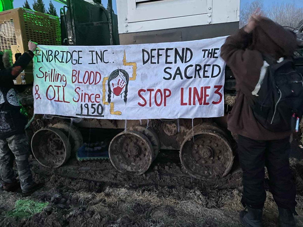 Water protectors near the worksite are singing songs to their locked-down friend to show solidarity and help keep their morale up as they brave the cold and state repression to #StopLine3.