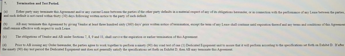 3/ AB truck order likely to be cancelled 12/31. $NKLA ‘s only remaining order for 800 hydrogen fueled trucks by Anheuser-Busch likely to be cancelled on 12/31 if NKLA fails to deliver the first of its hydrogen trucks, as specified by the 2/22/18 agreement (see Sec 3 and 7 below).