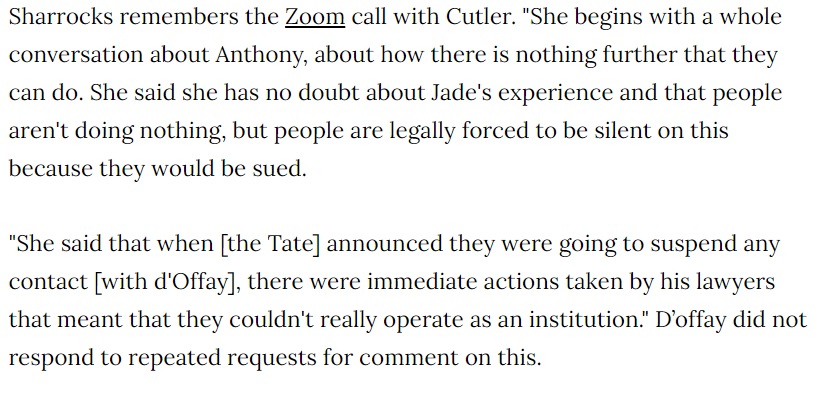 The Tate suspended links with d’Offay – because of other women’s complaints rather than Jade’s (more on that later). But in early 2019 they restored links again because *reasons* /5