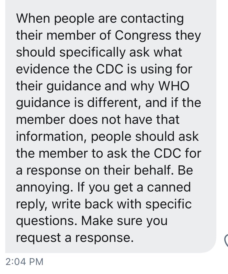 Advice from a Hill staffer when you’re contacting your representatives. I’m going to try to put together a script and more formal guidance for people who want to join me in this advocacy.