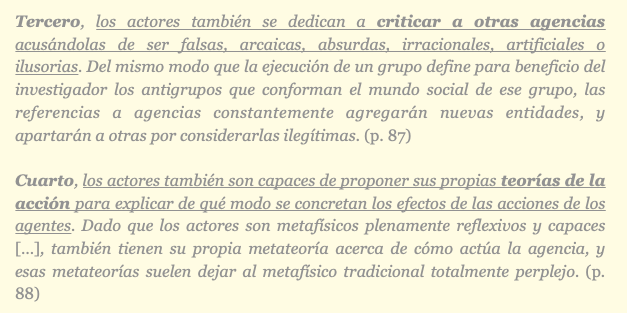 «agencias» (determinantes), tanto sujetos como objetos, y a este conjunto de «agencias» es a lo que llama «red». Si bien se reconoce que las acciones del actor social son «movidas» por las «agencias», esos determinantes permanecen y deben permanecer inciertos, desconocidos.