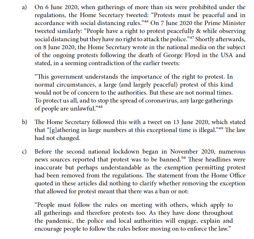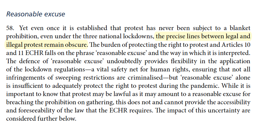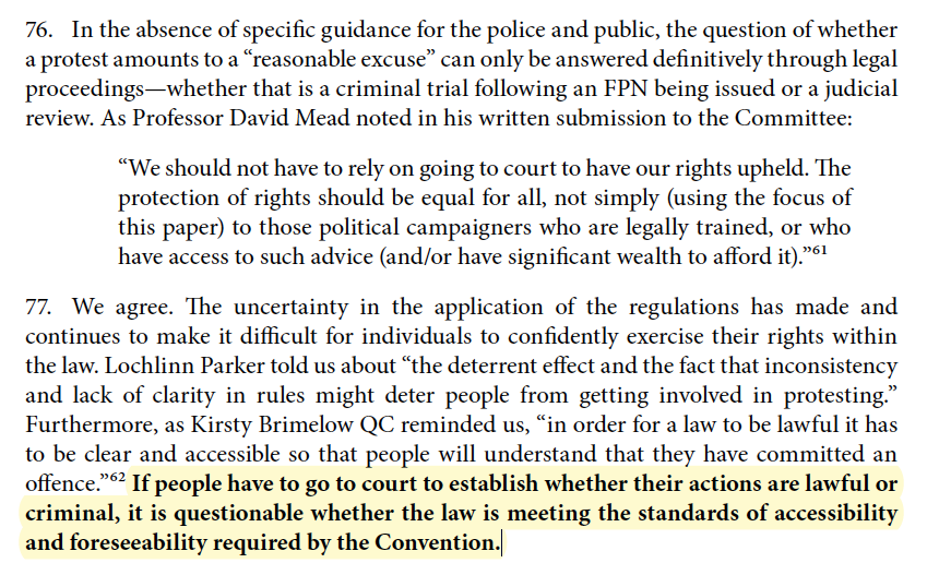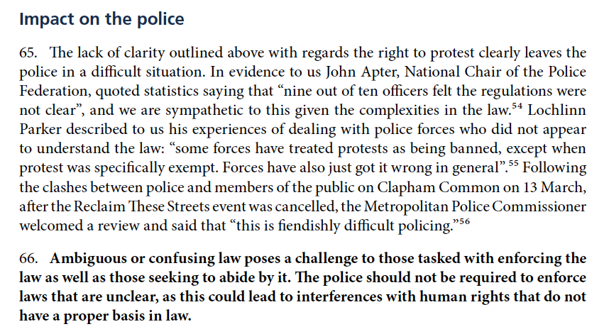 The @HumanRightsCtte recommend that the government make clear that all protest is not prohibited and re-introduce the protest exception to the rules (notwithstanding that it is not itself well drafted or wide enough)