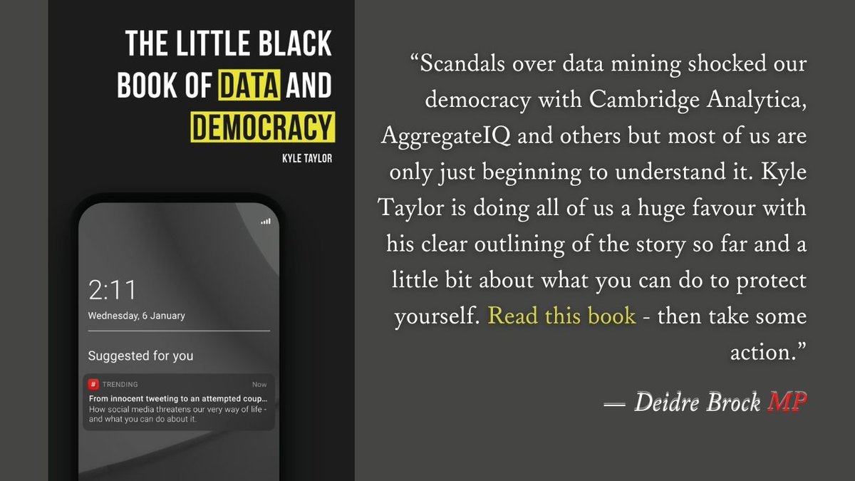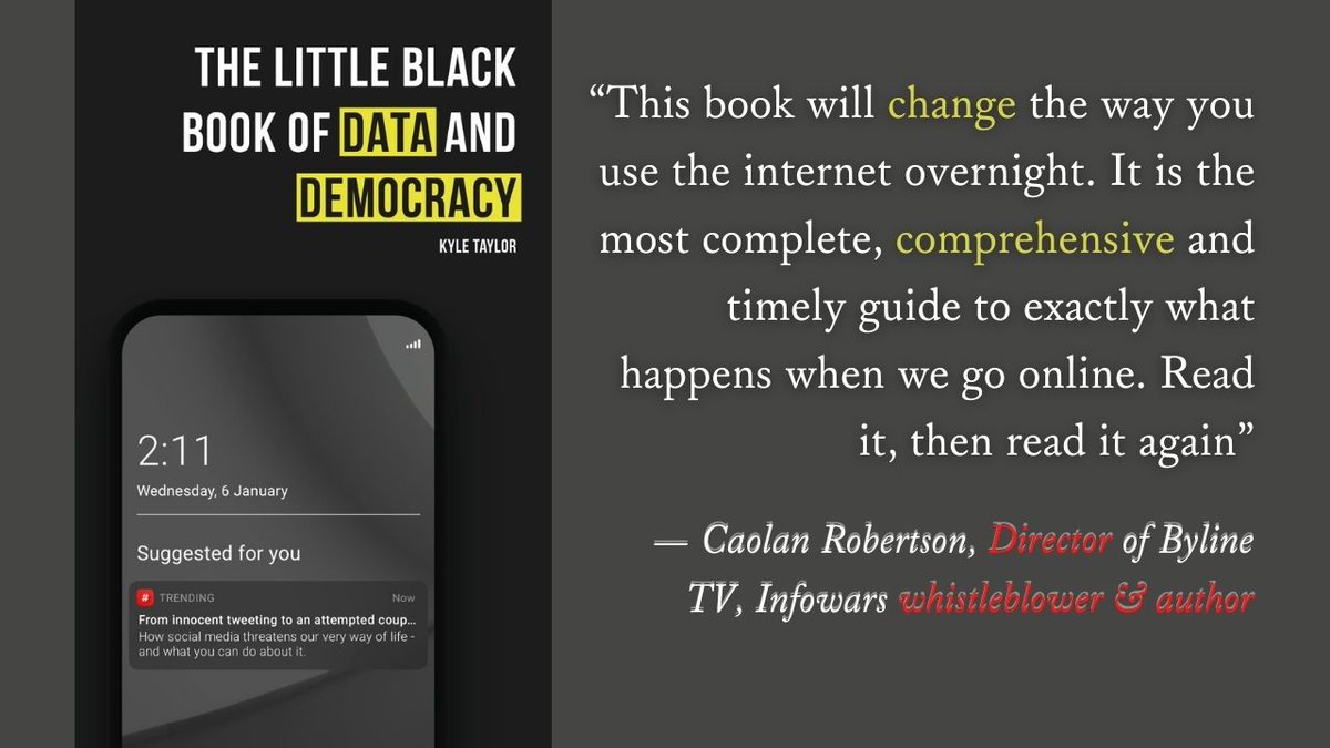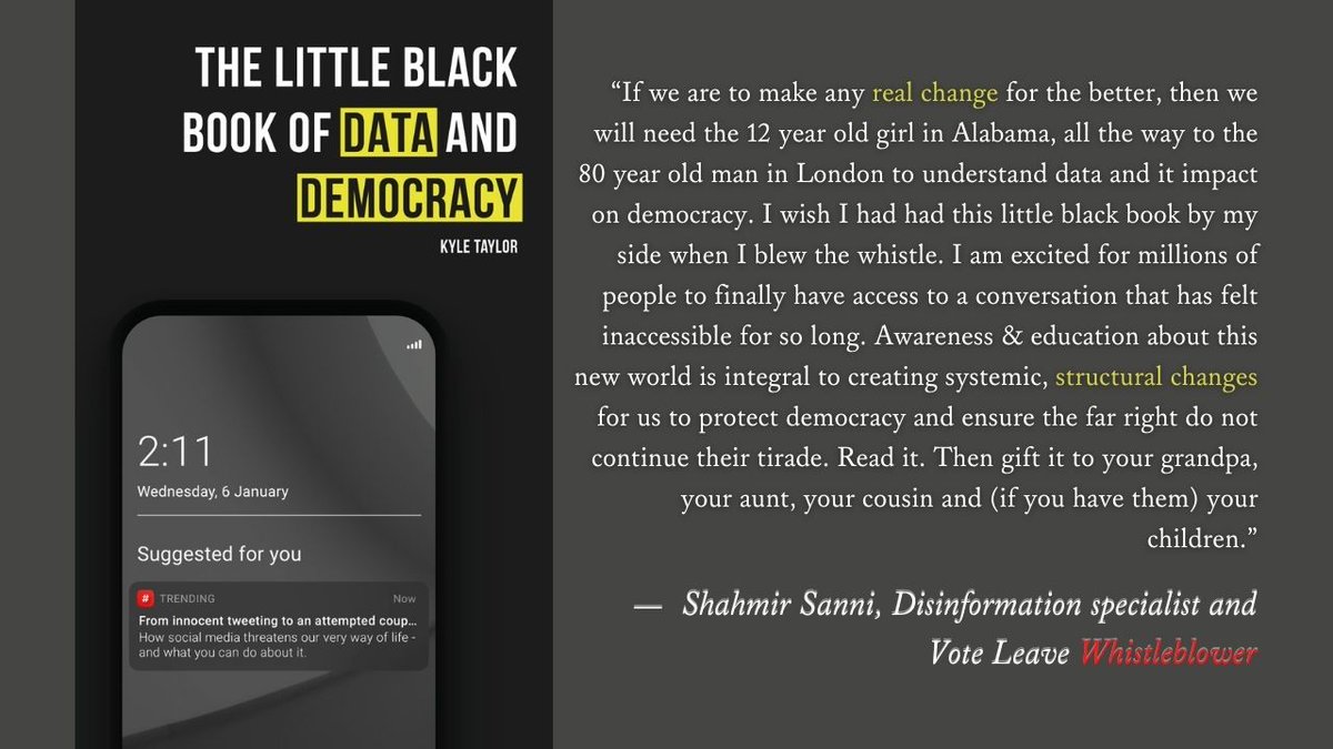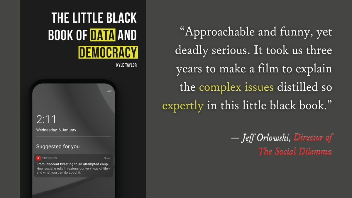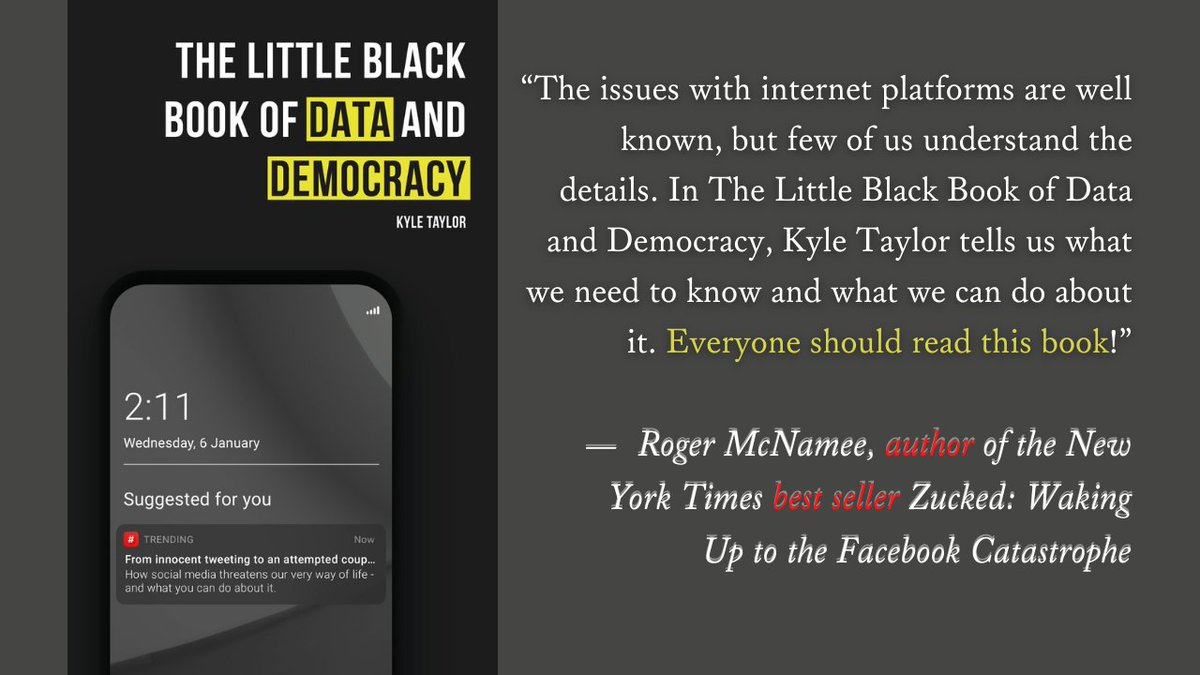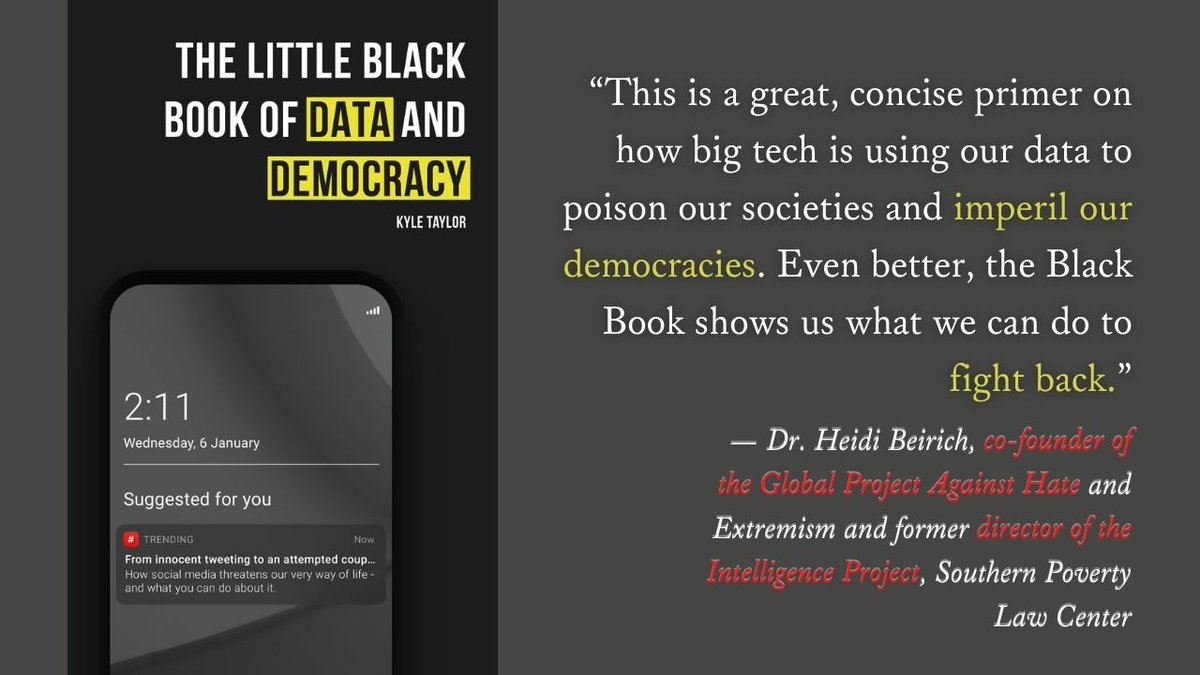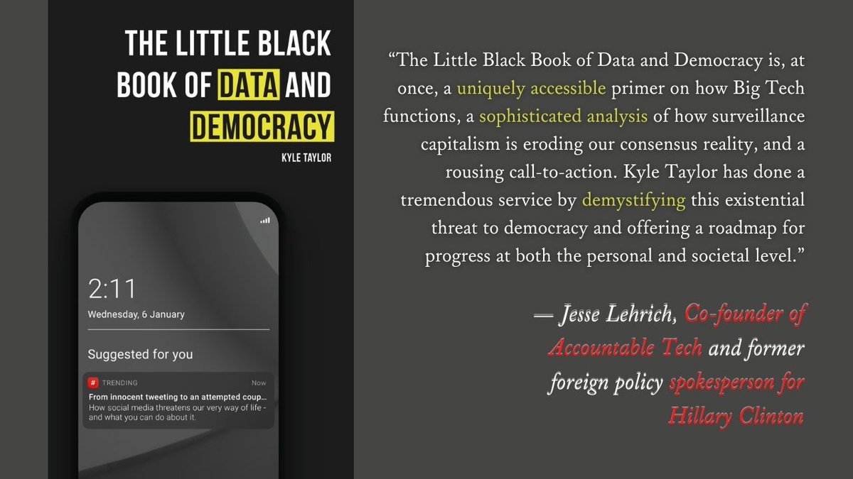 "The Little Black Book of Data and Democracy is, at once, a uniquely accessible primer on how Big Tech functions, a sophisticated analysis of how surveillance capitalism is eroding our consensus reality, and a rousing call-to-action..." - @JesseLehrich 1/2