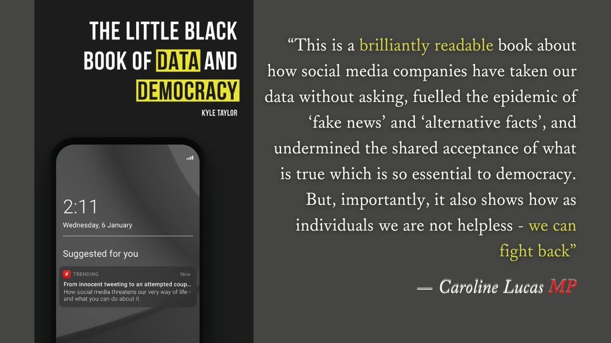 "This is a brilliantly readable book about how social media companies have taken our data without asking, fuelled the epidemic of ‘fake news’ and ‘alternative facts’, and undermined the shared acceptance of what is true which is so essential to democracy..." @CarolineLucas 1/2