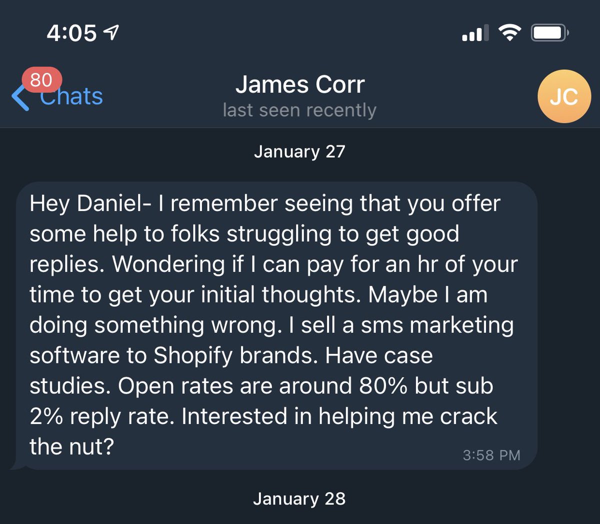 In fact, here he is on January 27th saying he’s not getting good results with cold email.