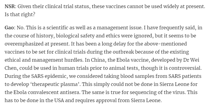 Gao: I have frequently said, in the course of history, biological safety and ethics were ignored, but it seems to be overemphasized at present.