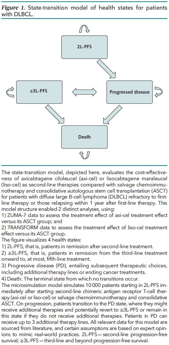 3/📊We used a microsimulation model to evaluate if axi-cel & liso-cel are cost-effective for DLBCL second-line treatment compared to ASCT. This allowed us to model real-world situations to predict lifetime costs and lifetime effectiveness for 10,000 simulated patients. #TcellRx