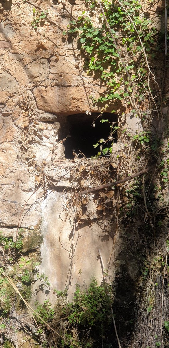 Mira i veuras moltes coses, cadena clavada en una roca d'una passera?, resclosa, antigues sèquies excavades a la roca, bosc de rivera.