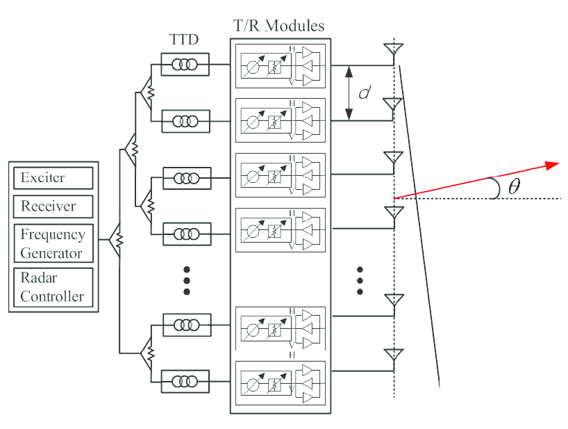 اگرچه این آسان به نظر میرسد، اما محدودیت های اندازه ماژول TR و نیاز به عملکرد با پهنای باند با فرکانس بالا این مساله را پیچیده میسازد. به طور معمول، ماژول های TR به صورت شبکه ای بر روی المان ها قرار می گیرند. برای جا دادن همه ماژول های TR، ارتفاع و عرض هر ماژول به اندازه