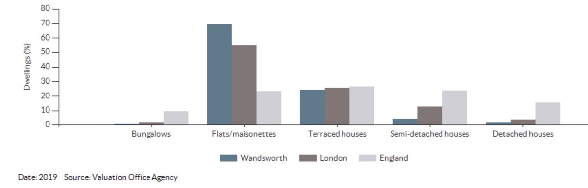 66% of Wandsworth homes are flats (versus 22% nationally) and 30% of households are private renters (versus 15% nationally)