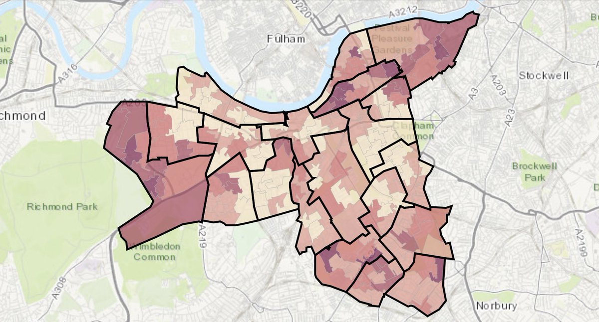 Here is the map for Wandsworth. Red = more deprived