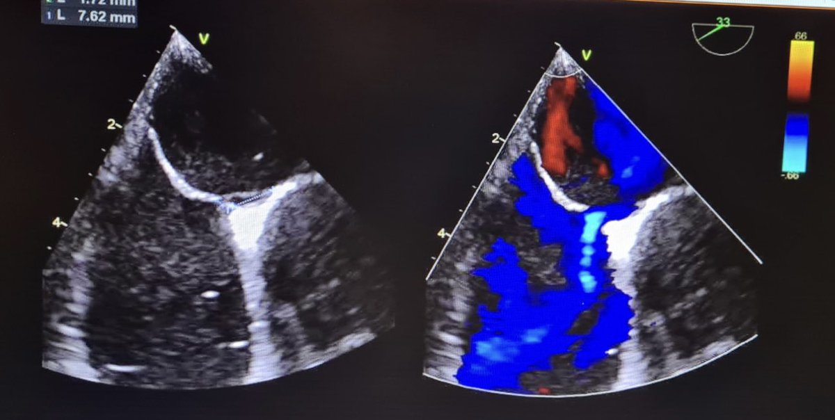 Ele foi operado e fecharam a comunicação entre os átrios colocando com uma prótese amplatzer (foto). Agora, o paciente, que é cardiologista, passa bem.