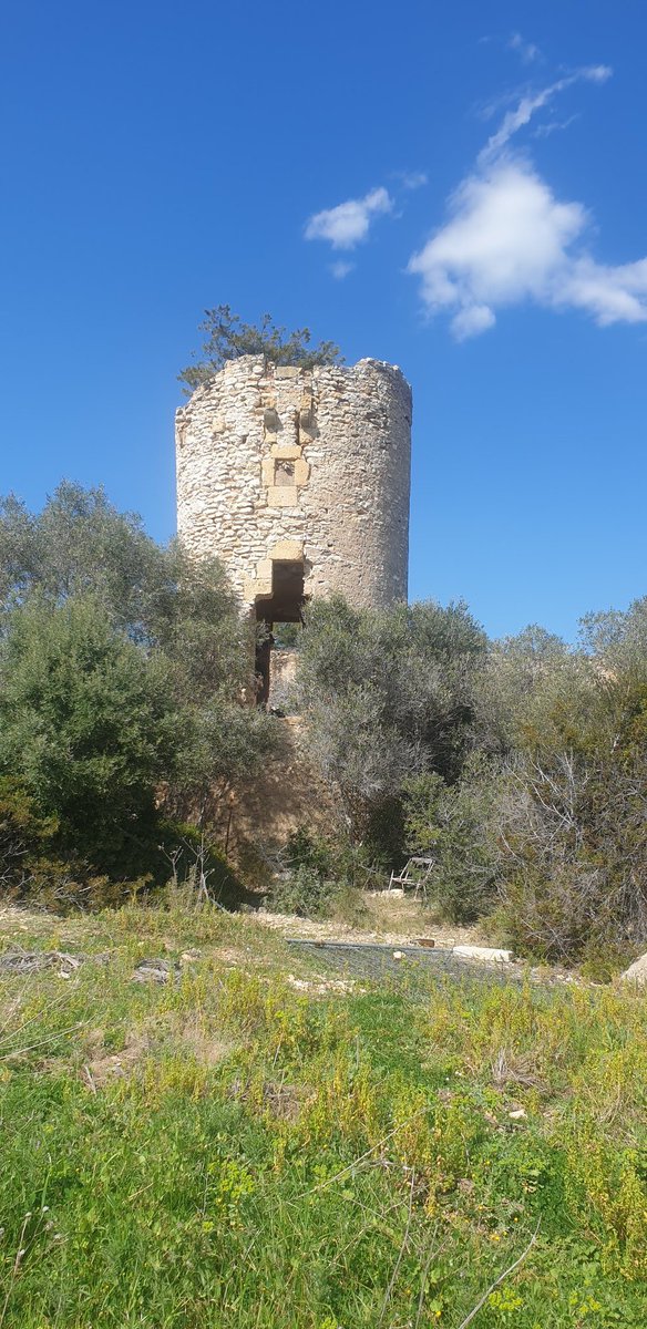 tocant al bosc en terres de cultiu Mas Grimau, 3 edificis al voltant d'una torre de defensa de 10 m d'alt i 4.2 de diametre, maçoneria i carreus, espitjeres, cosera sXIV, conectada visualment amb la Torre de la Mora. BCIN enrrunat. A la guerra civil va ser polvorí i va explotar.