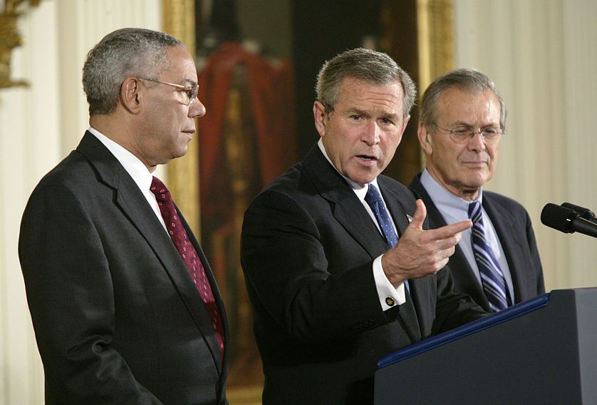 Mais les États-Unis ne vont pas s'arrêter là puisque, très vite, l'idée que l'Irak de Saddam Hussein ait pu aider Al-Qaïda va germer dans les têtes des faucons du Pentagone et de Georges W.Bush.