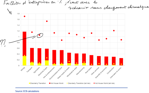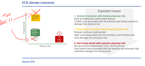 Dans la réalité le risque de transition est incommensurable par rapport au risque climatique, conclusion à laquelle arrive aussi la BCE . #toutçapourça