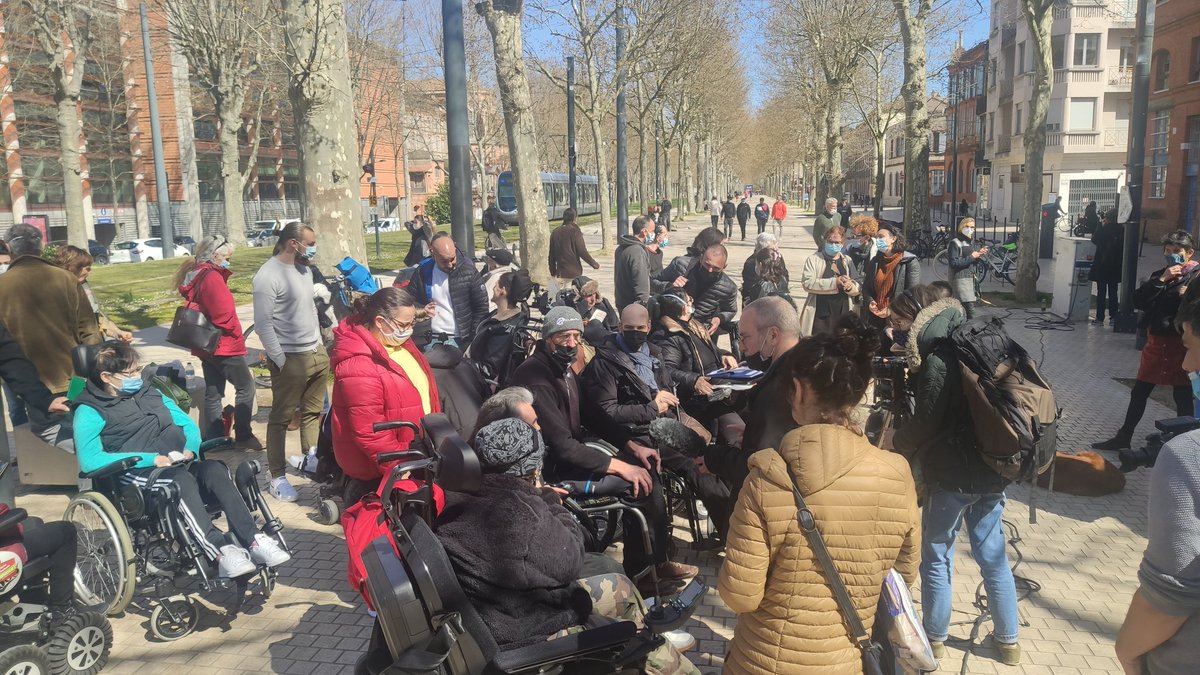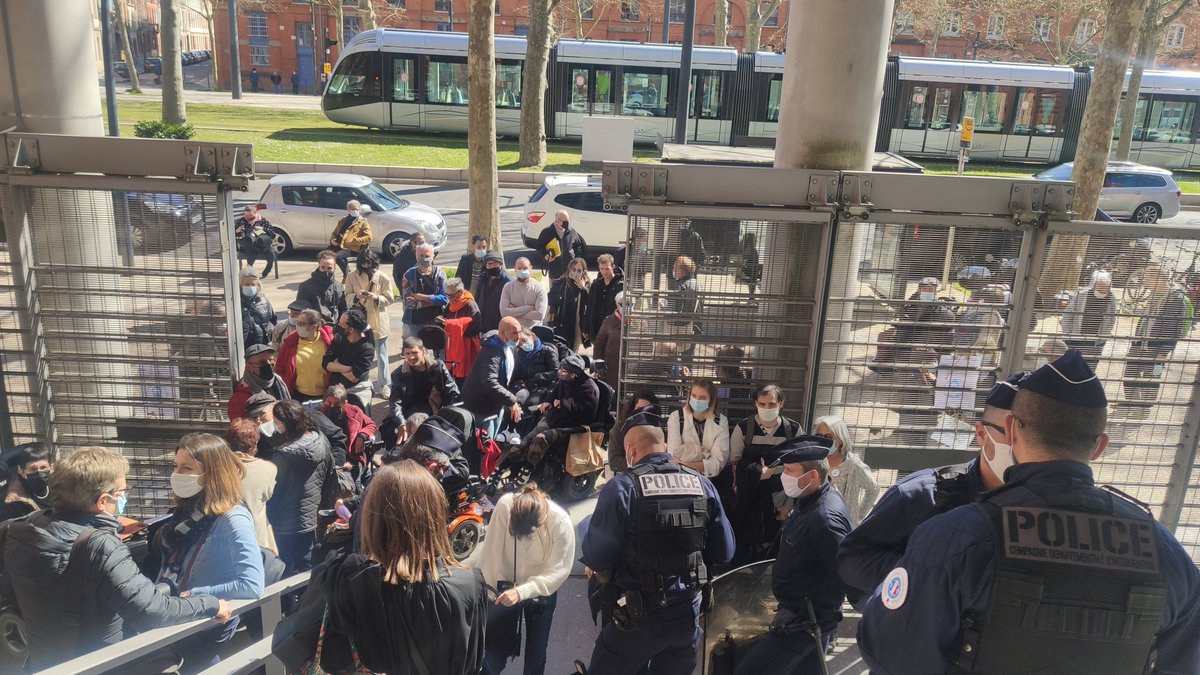 🔴 Je vous annonce que nous bloquons le Tribunal tant qu'aucune solution ne sera trouvée pour raccompagner les activistes d'Handi Social et du CIAH31 à leur domicile.