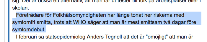 En sak jag funderar på är mediebilden av pandemin. Alltså bilden av hur smittan beter sig. Den vetenskapliga berättelsen i media. Den här artikeln är från YLE förra året.