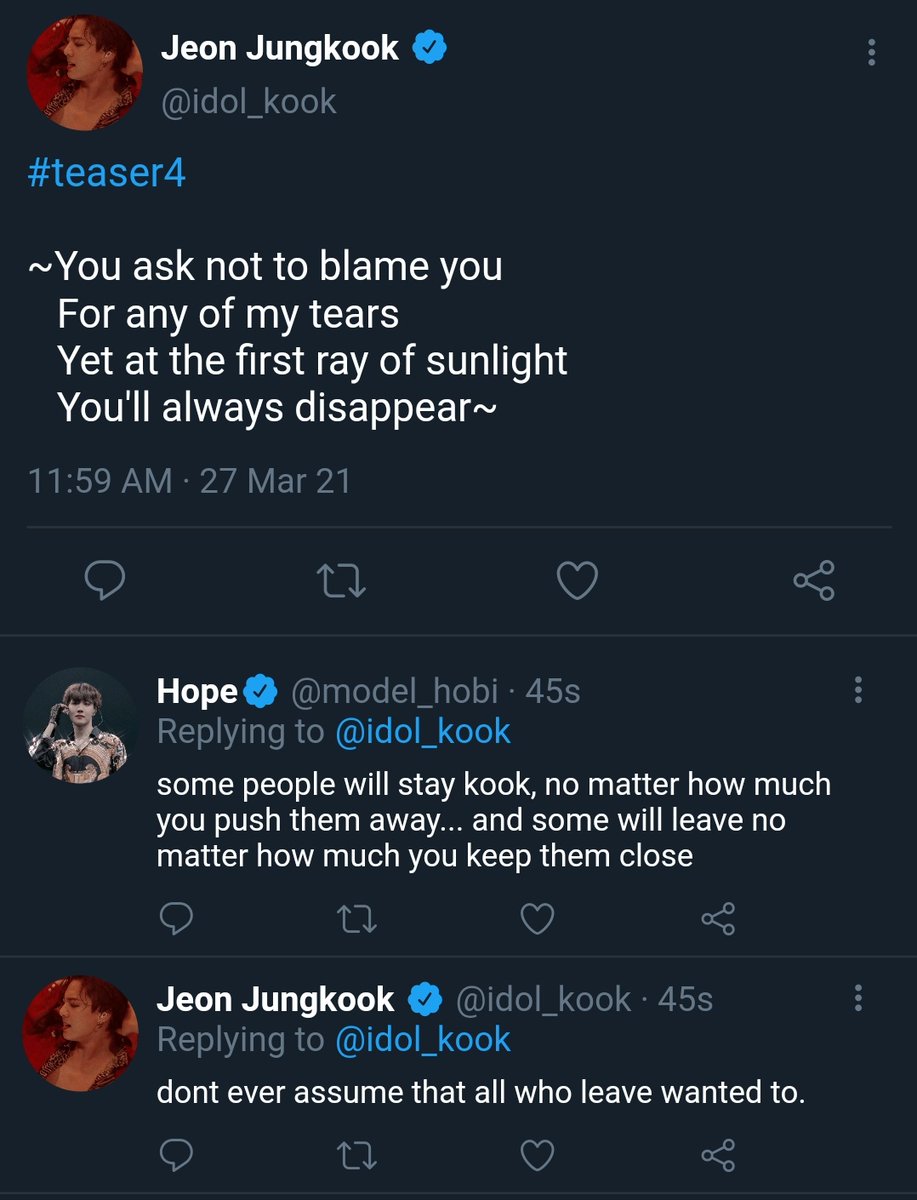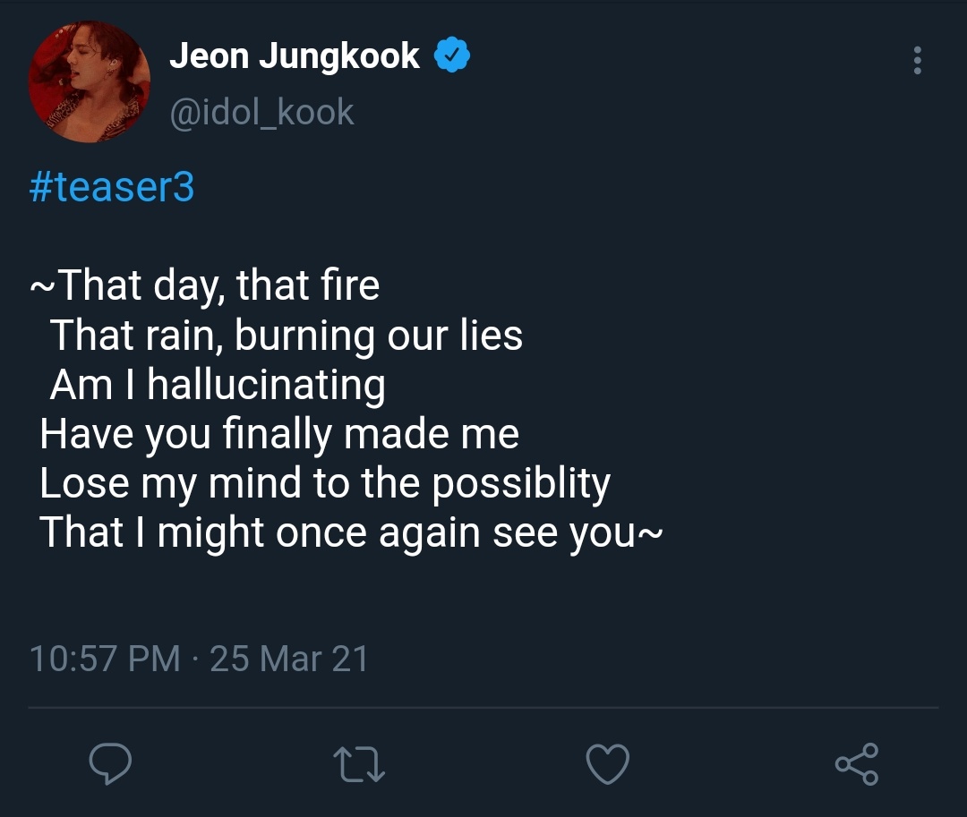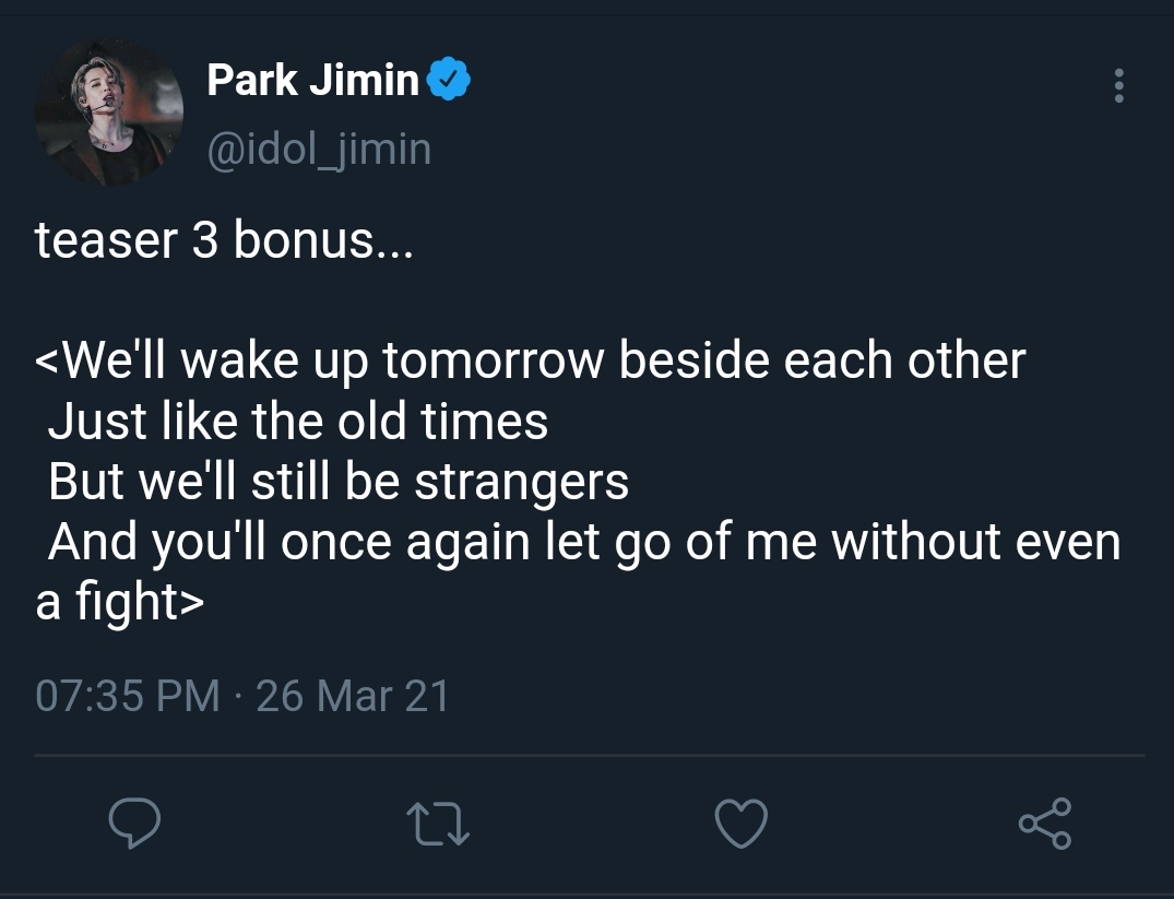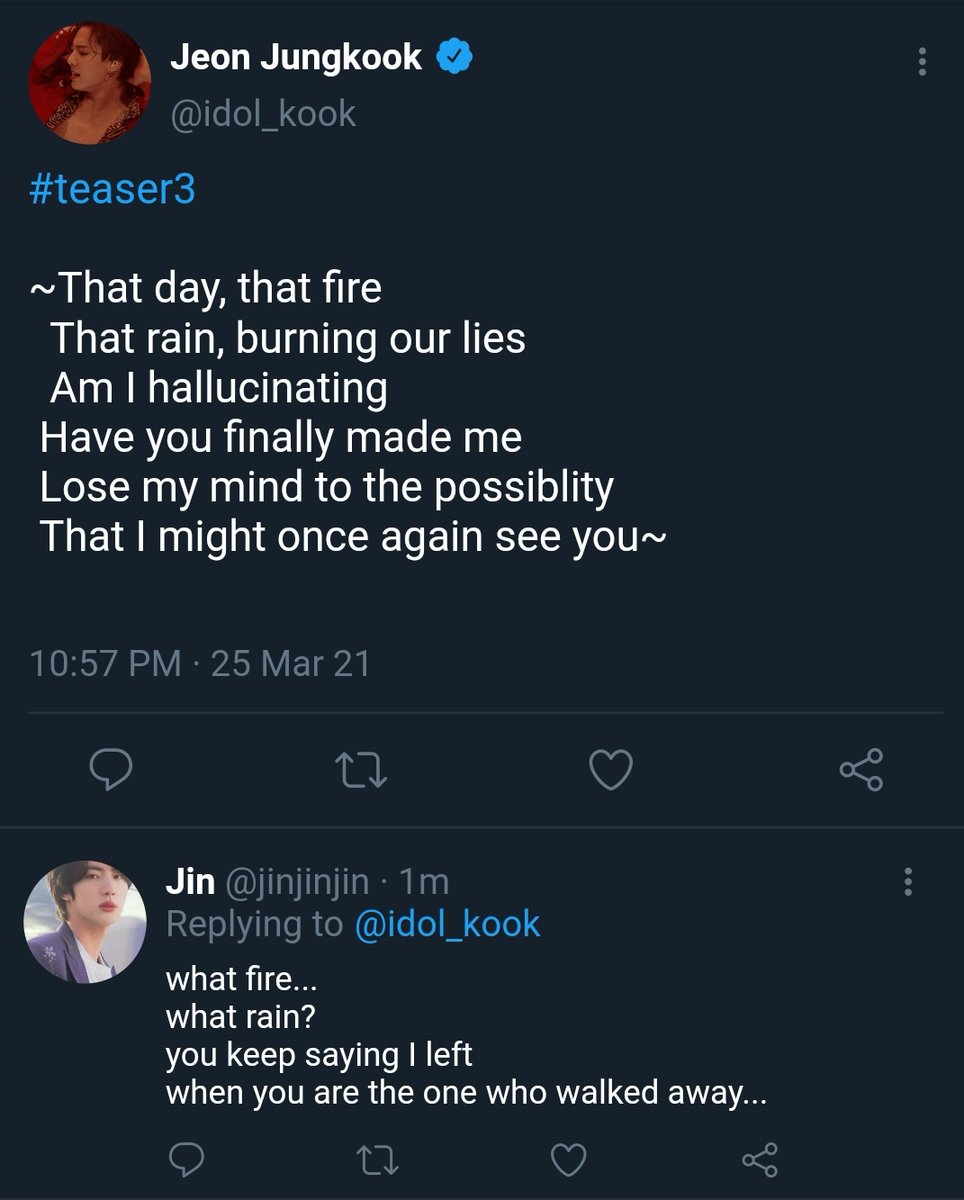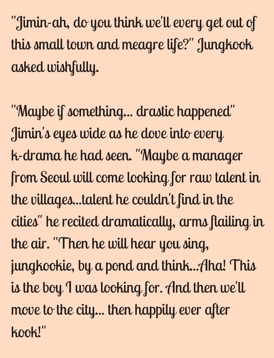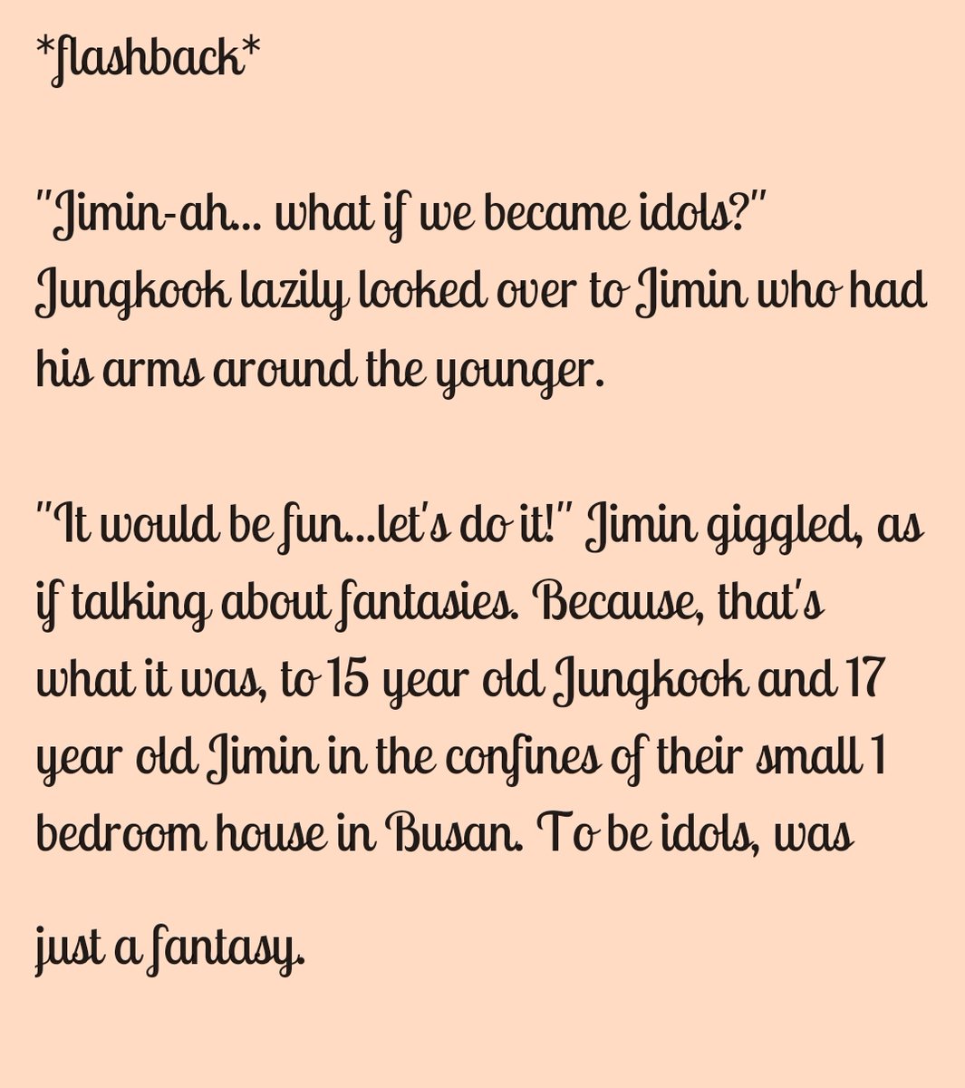 When teaser lyrics for solo idols Jimin and Jungkook come out, fans realize they are telling two parts of the same story. When an old photo with both idols together is leaked, all are left wondering, who were they? More importantly, who were they to each other?