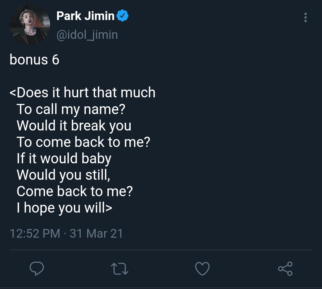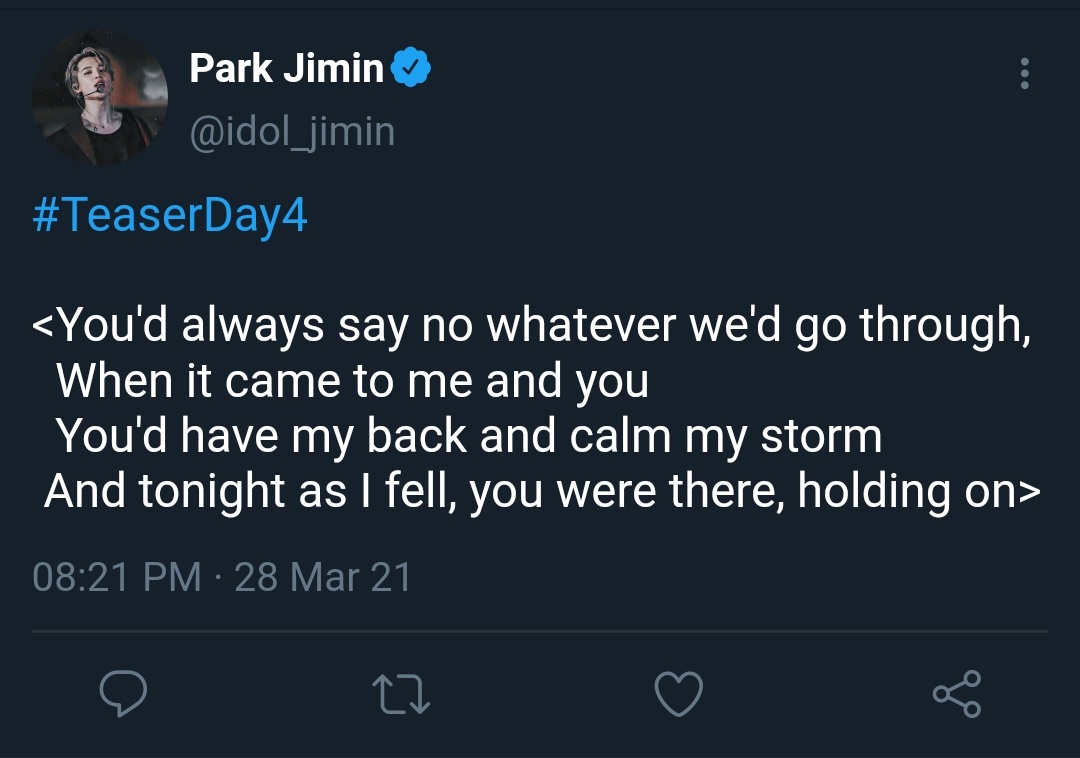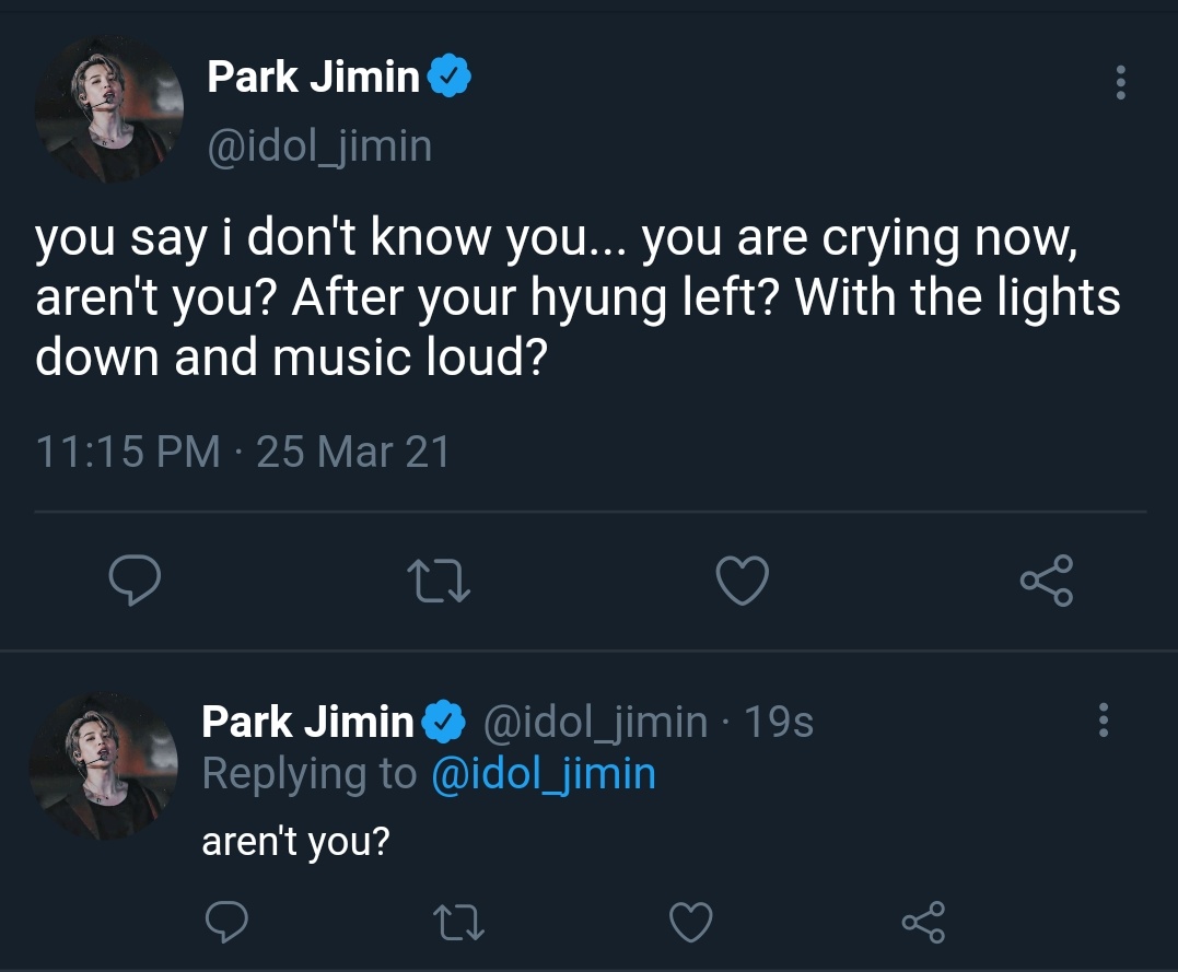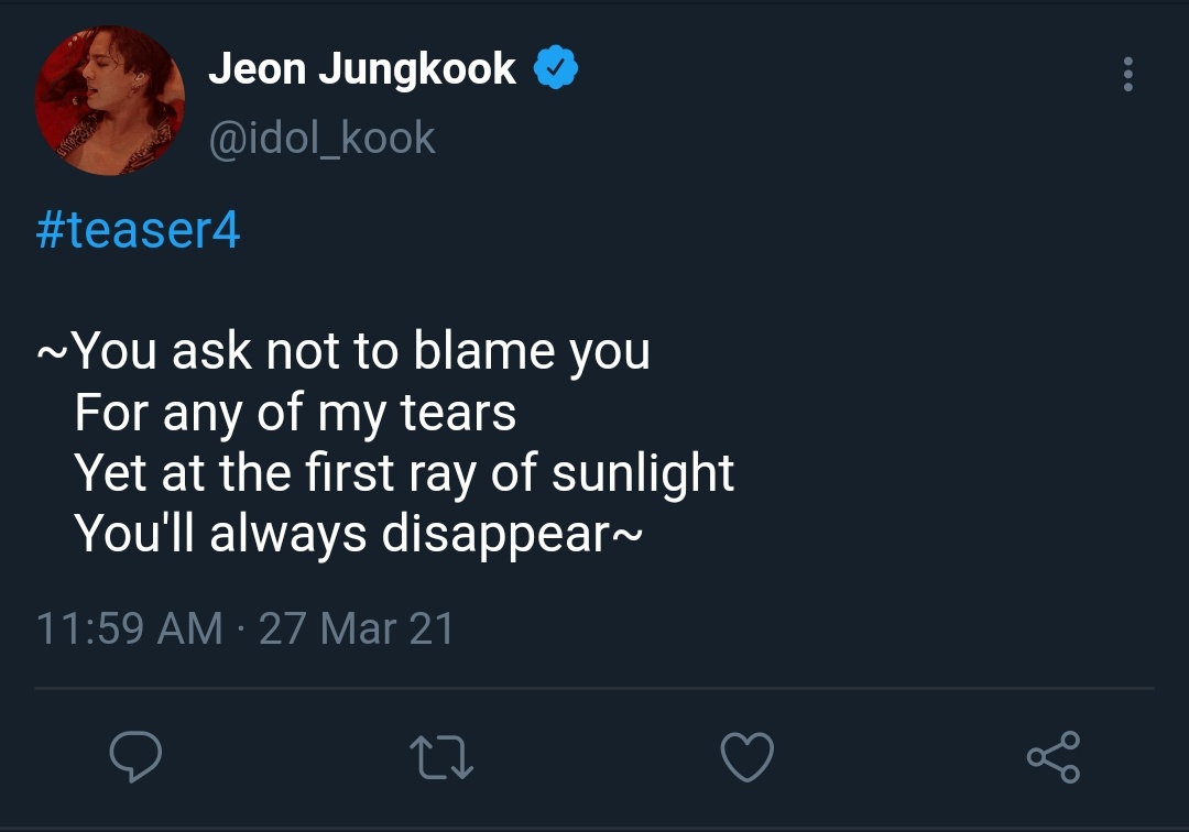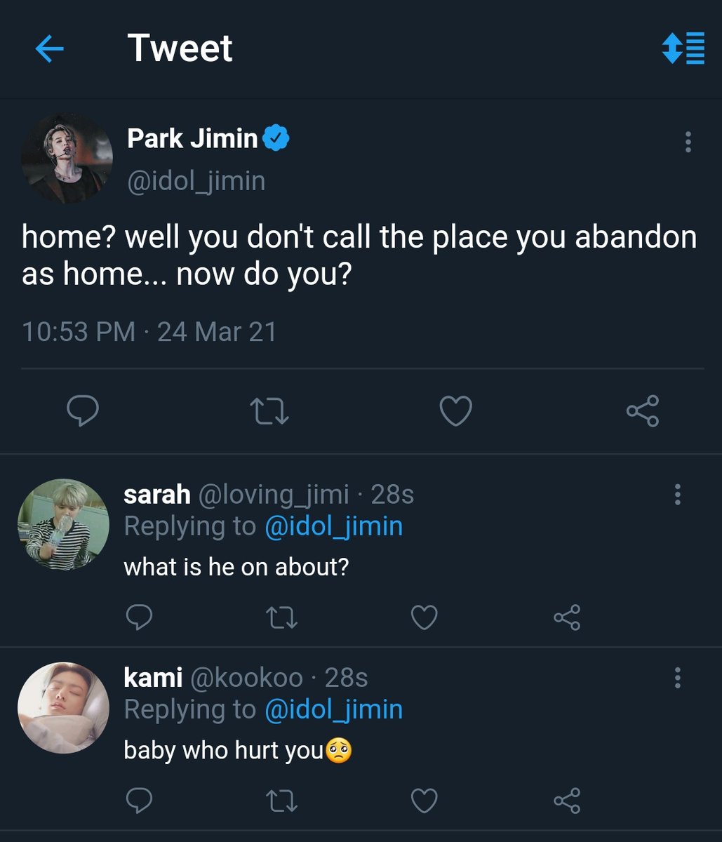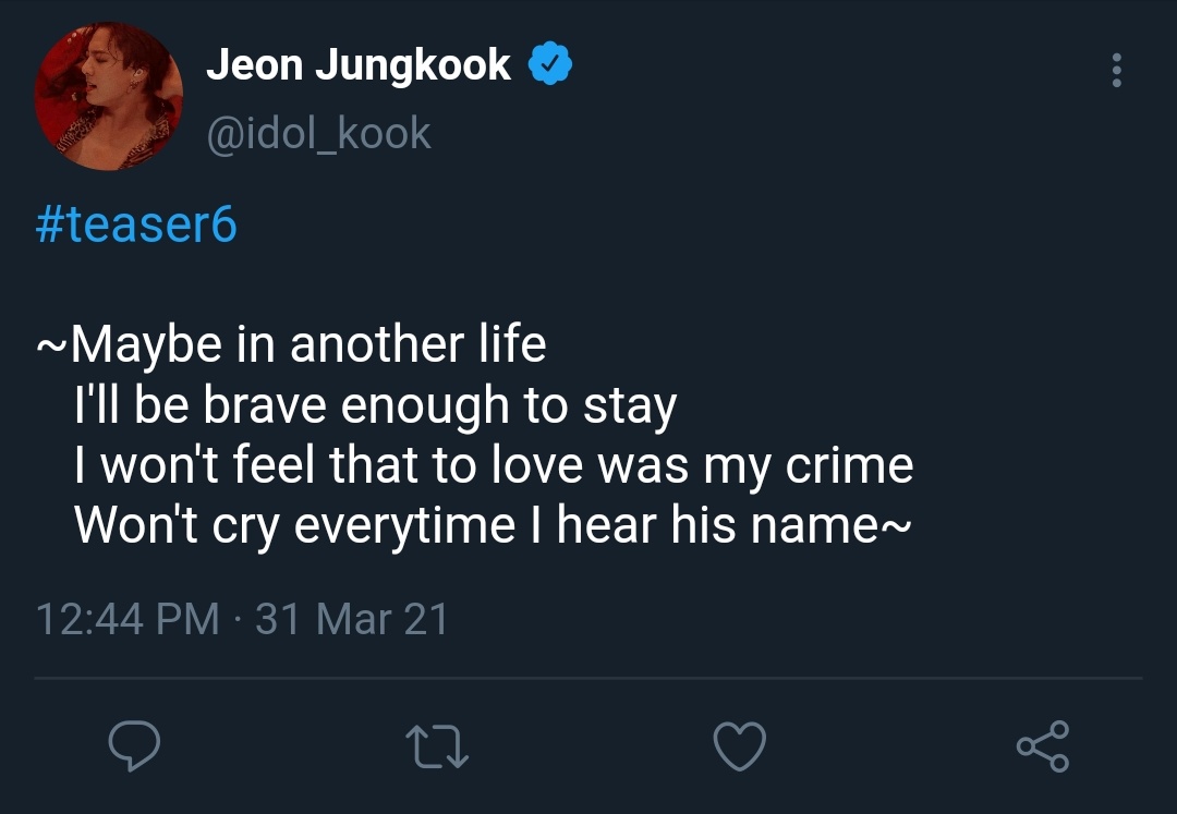 When teaser lyrics for solo idols Jimin and Jungkook come out, fans realize they are telling two parts of the same story. When an old photo with both idols together is leaked, all are left wondering, who were they? More importantly, who were they to each other?