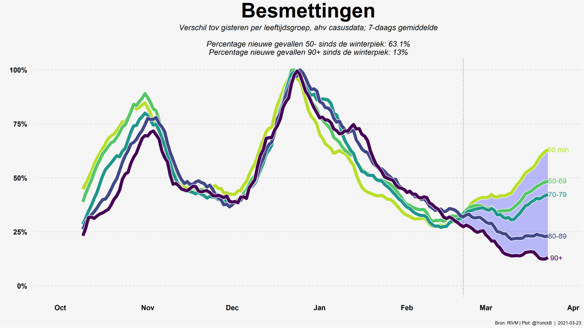 Verschil nieuwe gevallen tussen verschillende leeftijdsgroepen.