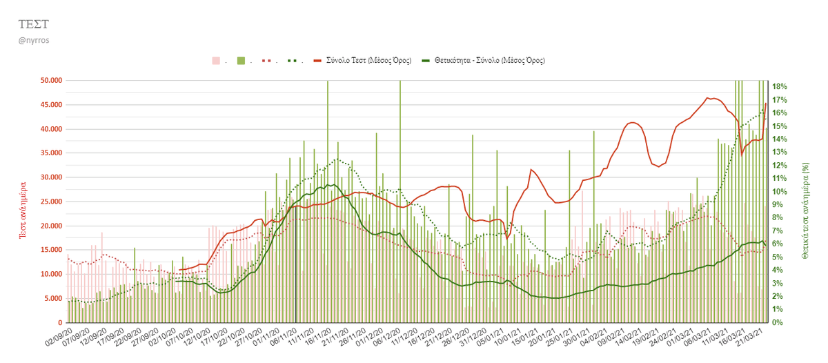 θετικότητα ημέρας: 5,57% (ΜΟ εβδομάδας 5,87%)