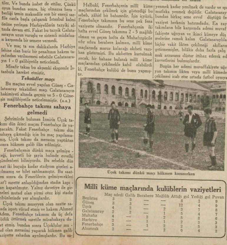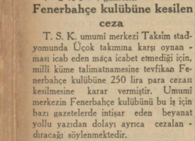 Fenerbahçe, elbette organizasyondan çekilmeyi es geçip, bu atılmaya ilişkin kısa bir değinme yazan gazeteyi (Cumhuriyet) bir başka gazetede (Tan) eleştirmeyi tercih etmiş...