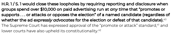 #HR1/#S1 closes these wink-and-a-nod loopholes: a dark money group that spends big money on politics has to disclose donors over $10K.