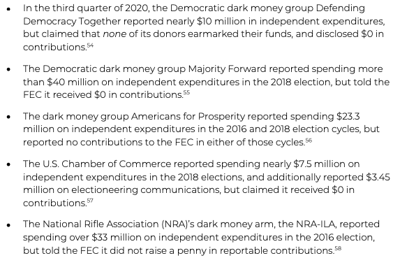 For example, two Dem dark money groups together spent over $40M on TV ads promoting or attacking candidates, but never reported any of that spending to the FEC.